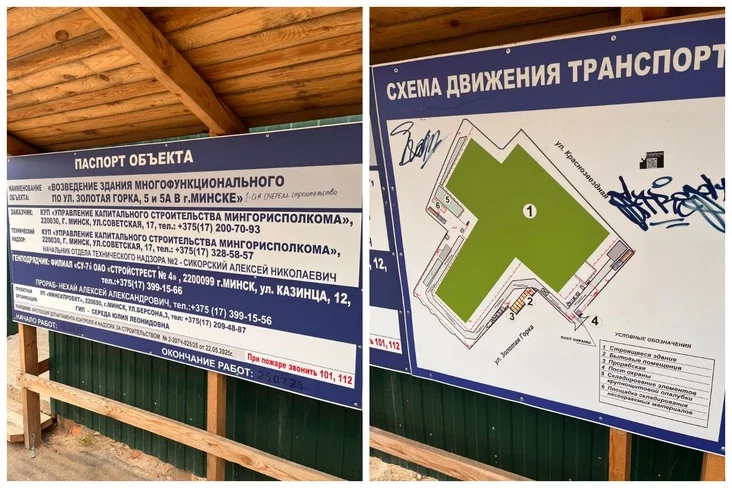 Согласно паспорту объекта, размещенному на стройке, проектировщиком уже выступает Минскпроект, известный своими проектами для Лукашенко — от Дворца Независимости до секретных резиденций. Однако контактным лицом почему-то осталась главный инженер проекта Юлия Середа из Белгипроета.