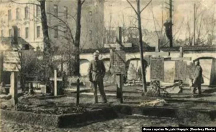 Та же стена на Лютеранском кладбище во время Первой мировой войны. Фото из архива Людвики Кардис