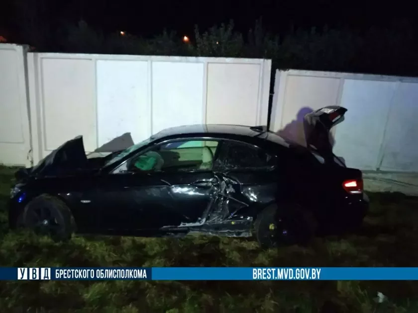 В Пинском районе пьяный бесправник на BMW врезался в бетонный забор