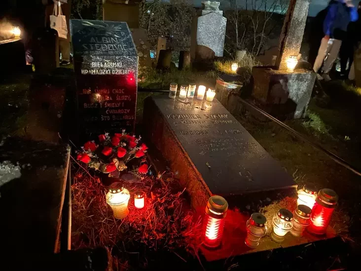 У памятников Альбину и Константину Степовичам. Альбин был музыкантом и политиком, в 1928‑1930 годах депутатом польского Сейма от белорусов. Константин был католическим священником и поэтом, более известным под творческим псевдонимом Казимир Сваяк