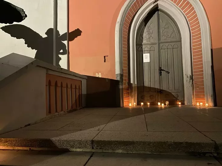У дверей часовни, в которой в 2019 году были перезахоронены останки Кастуся Калиновского и его соратников