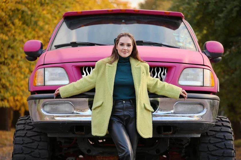На розовом Ford F-150 Екатерина ездит постоянно. Однако теплые отношения между девушкой и пикапом сложились не сразу. После автошколы ей фактически пришлось переучиваться, чтобы приспособиться к большой машине.