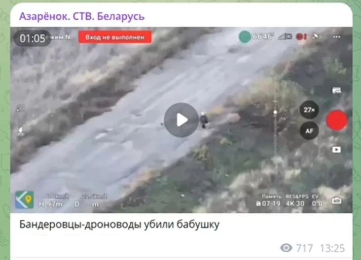 Одно из видео с подписью «бандеровцы-дроноводы убили бабушку» разместил в своем телеграм-канале Григорий Азаренок.
