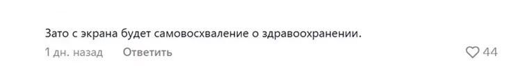 «Зато с экрана будет самовосхваление о здравоохранении», — добавляет еще один.
