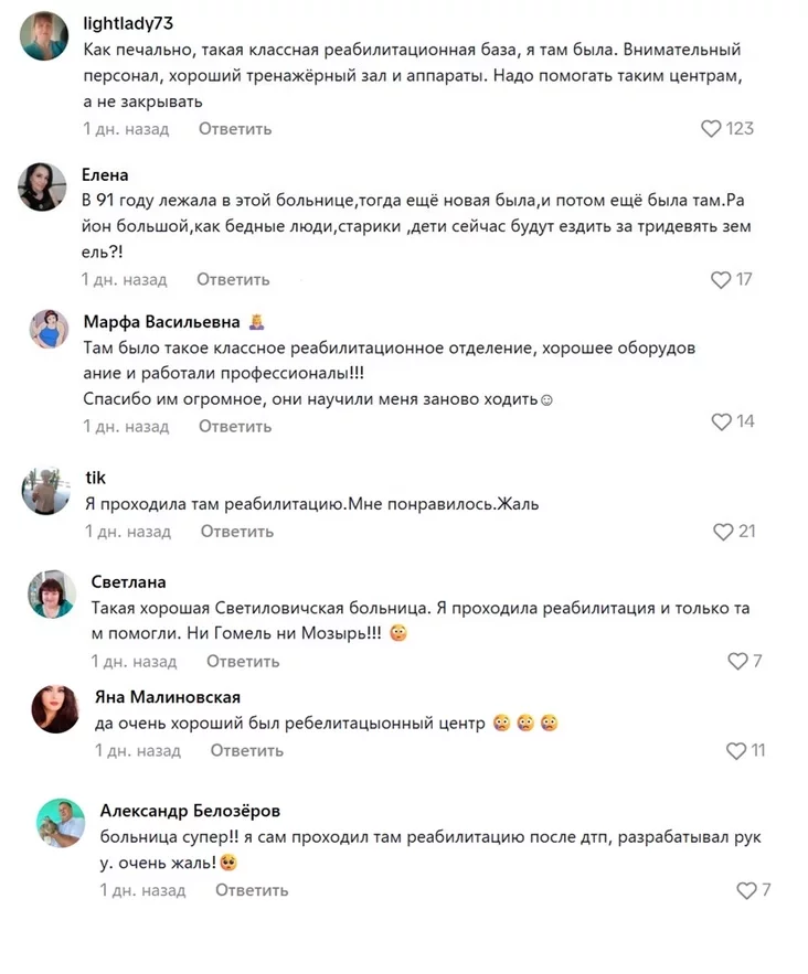 «Народ мрет, и больниц не надо. Главное президентская и депутатская!!!». Что люди пишут о закрытии реабилитационного центра в Гомельской области