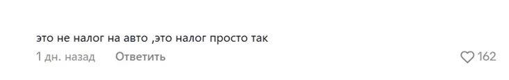 «Это не налог на авто, это налог просто так», — высказывает мнение один из комментаторов. И с ним соглашаются более 160 других зрителей.