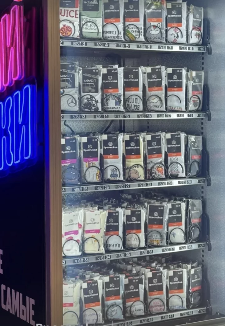 В торговом центре Triniti в Гродно появился автомат с носками. Это первый такой вендинговый автомат в Беларуси. Там продаются носки от Брестского чулочного комбината.