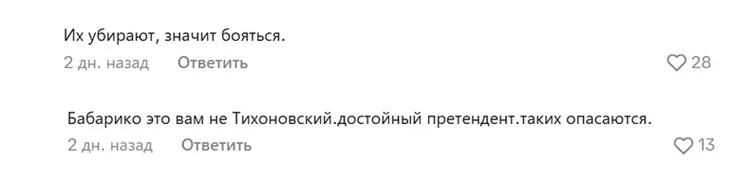 Есть и такое мнение: «Бабарико — это вам не Тихановский. Достойный претендент. Таких опасаются».