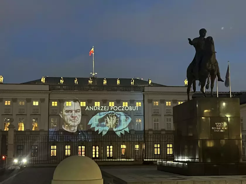 Портрет политзаключенного Анджея Почобута проецируется на фасаде Президентского дворца в Варшаве ФОТОФАКТ