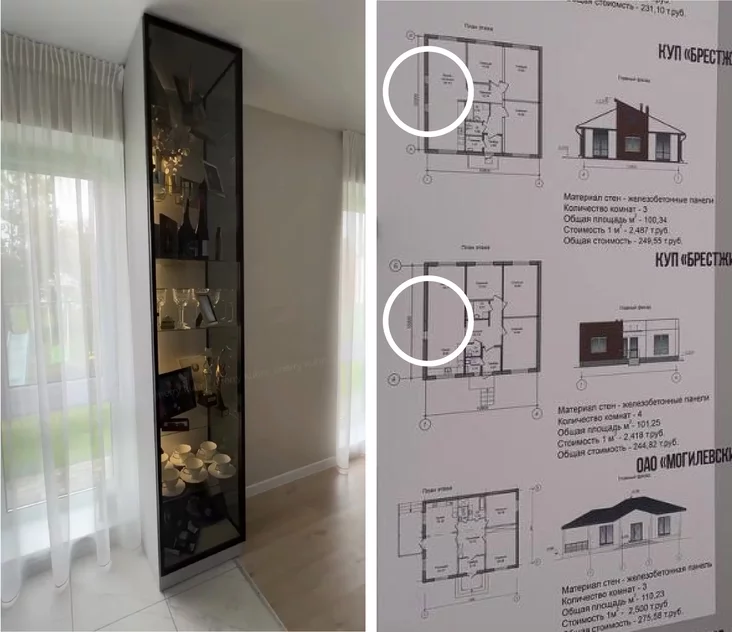 Два дополнительных боковых окна кухни с видом на детскую горку позволили точно сузить выбор. На планах домов «Брестжилстроя» только в варианте со скатной крышей на этой стене запроектированы два окна, а не одно узкое, как в варианте с плоской крышей. Таким образом, остались только три возможных дома.