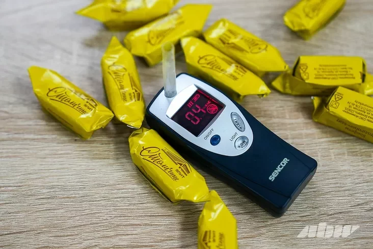 После еще пяти конфет алкотестер показывает 0,4 промилле. Но причина явно в парах алкоголя во рту.