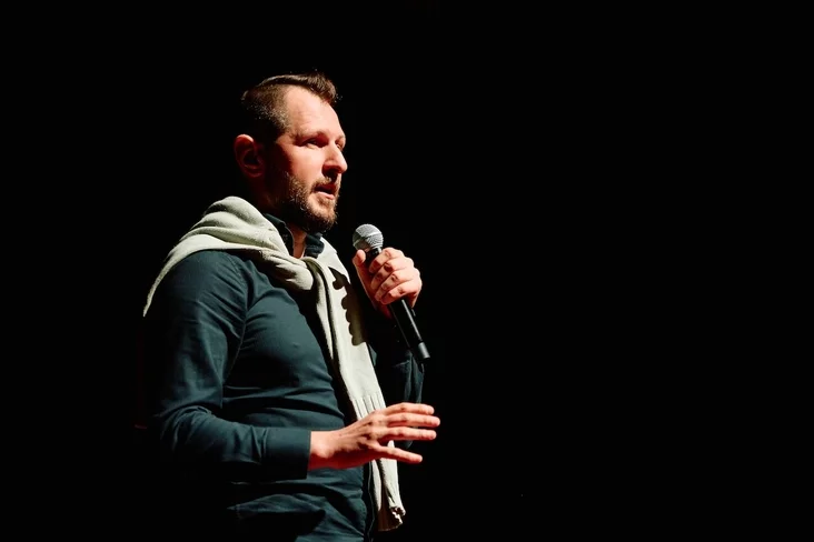 Поэт Виталь Рыжков продолжает европейский тур со своим поэтическим стендапом «Презентация».