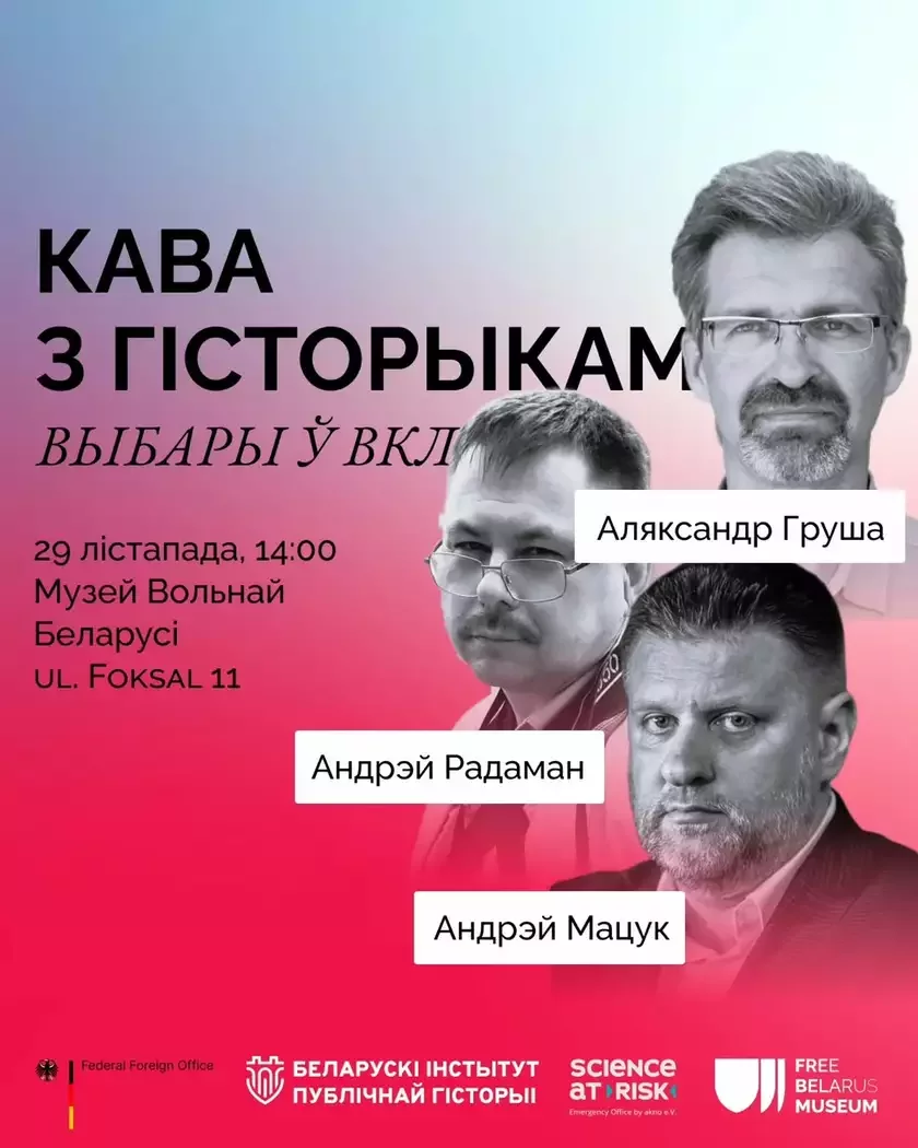 Собеседниками на этом мероприятии будут известные белорусские историки Андрей Радаман, Александр Груша и Андрей Мацук. Вы узнаете о:
