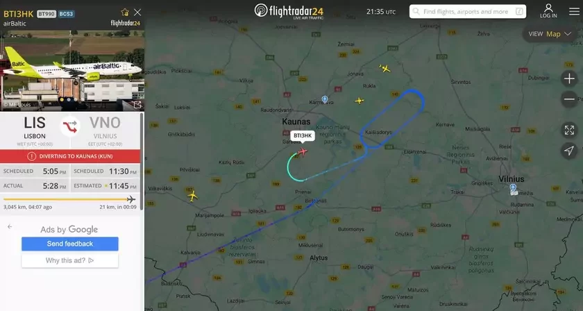 Несколько самолетов были отправлены в Каунас, а сами рейсы в Вильнюс отложены до 08:15.
