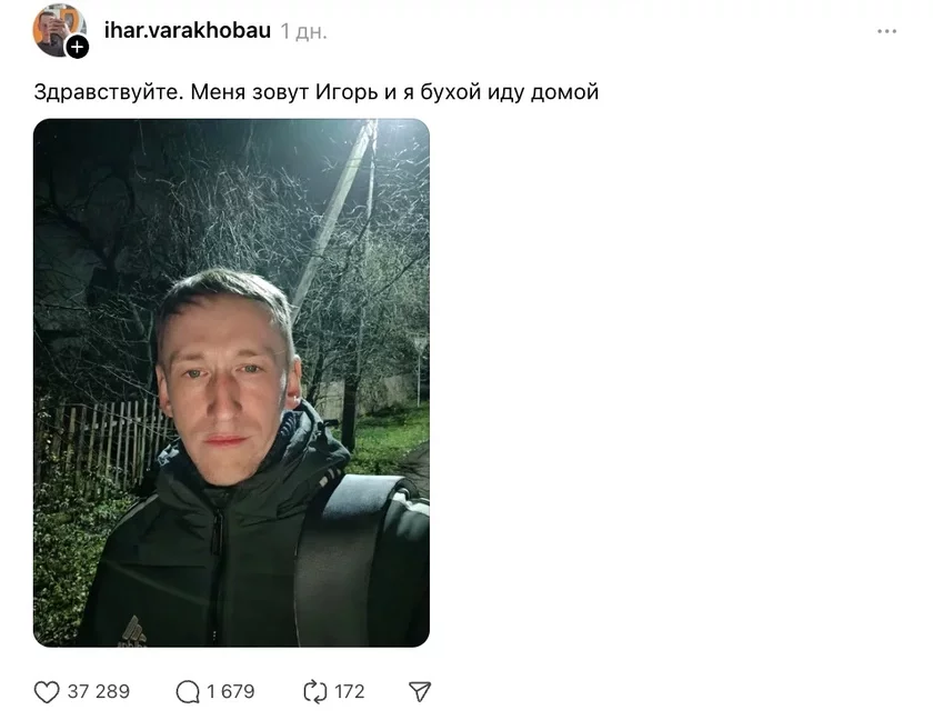 Пост пьяного витебчанина, который рассказал, что идет домой, набрал 650 тысяч просмотров — следил весь русскоязычный тредс