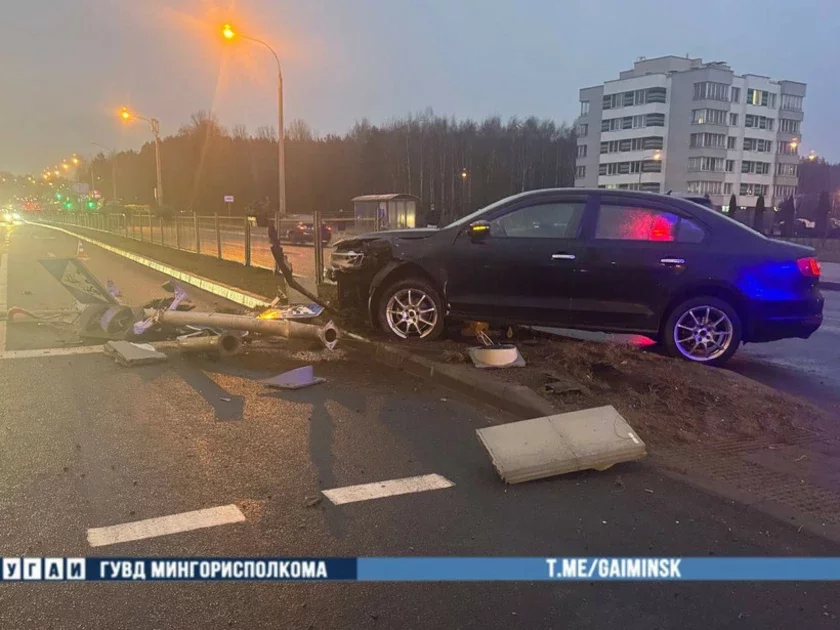 48‑летняя водительница Volkswagen ехала по улице Франциска Скорины и вблизи перекрестка с улицей Жасминовой выехала за пределы дороги, сбила светофор и врезалась в ограждение.