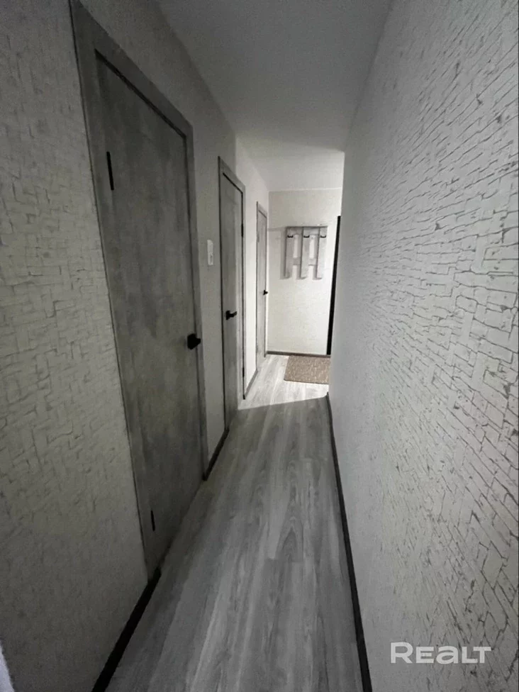 В квартире довольно интересная планировка — есть несколько тупиковых коридоров, где можно случайно потеряться. А серо-кирпичные стены добавляют антуражности.