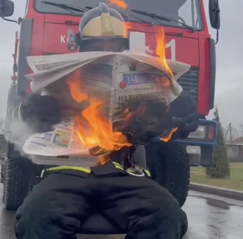 В Корме пожарный призывает подписываться на районную газету через ее публичное сжигание ВИДЕО