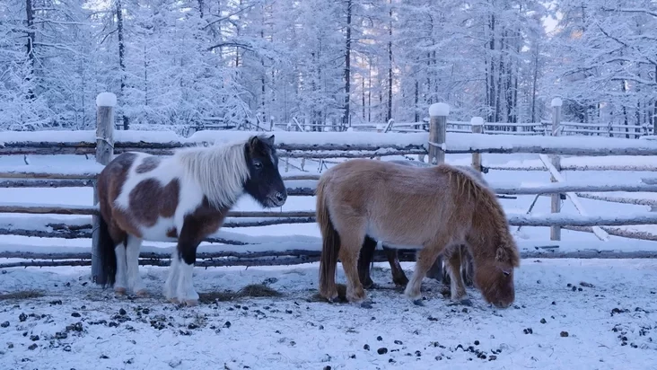 Настоящим чудом адаптации являются якутские лошади. Эти низкорослые, коренастые животные с невероятно густой шерстью и жировой прослойкой. У них высокие копыта, которые действуют как изоляторы и позволяют животным сутками стоять на ледяной земле, не обмораживая ноги. Лошади живут на открытом воздухе весь год, даже при температурах до -70°C.