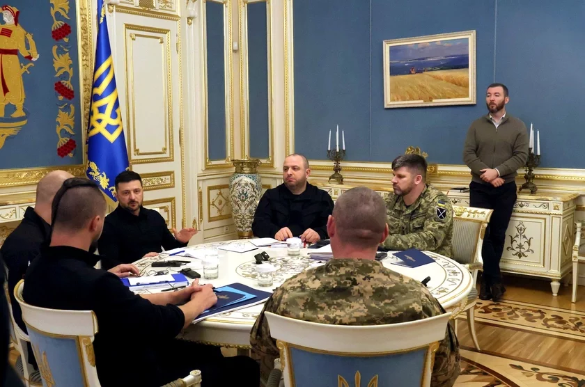 Рустем Умеров и Андрей Гнатов на фото справа от Зеленского. Фото: Pavlo Bahmut/Ukrinform/NurPhoto via Getty Images