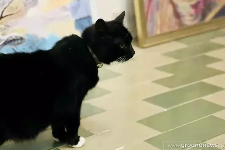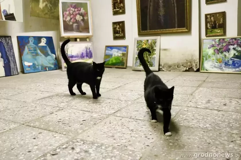 Два симпатичных черных кота охраняют картины в гродненской галерее