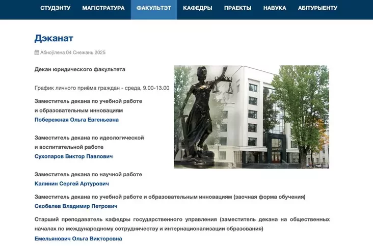 На юрфаке БГУ по-тихому разжаловали декана-доносчика