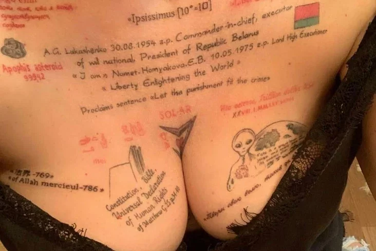 Белоруска набила на теле портреты Лукашенко и его сыновей, Умки, Путина и Си Цзиньпина