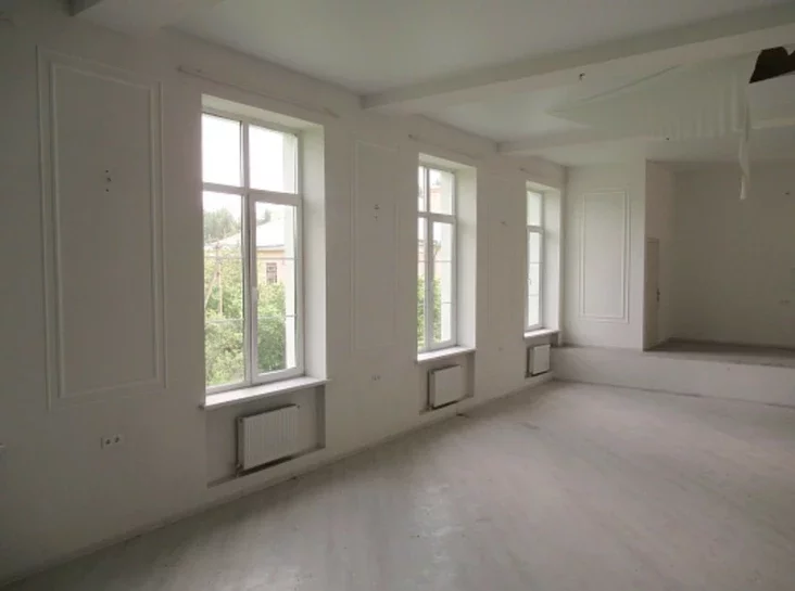 Внутри объекта частично сохранена отделка. Стены окрашены, напольное покрытие обновлено, кое-где еще осталась лепнина и молдинги. При этом часть помещений очевидно требуют ремонта.