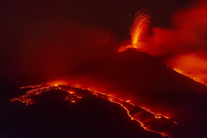 Активная фаза извержения продолжается с 24 декабря, но плотная облачность затрудняет точную оценку событий. Работа аэропорта города Катания, который находится неподалеку, не прерывается, однако для авиационного движения установлен красный уровень тревоги.