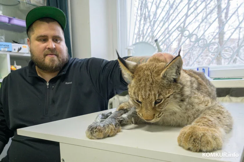 Охотник сообщил о случившемся в Бобруйскую межрайонную инспекцию охраны растительного и животного мира. Таков порядок, прописанный в правилах охоты на диких животных. Представители инспекции и специалисты по диким животным выехали на место. В их присутствии животное освободили из капкана, посадили в клетку и привезли в ветеринарную клинику к известному бобруйскому Айболиту — Григорию Белягову.