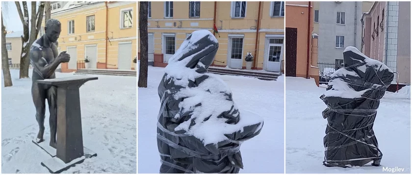 Недавно открытую скульптуру армрестлера в Могилеве уже закрутили пленкой ФОТОФАКТ