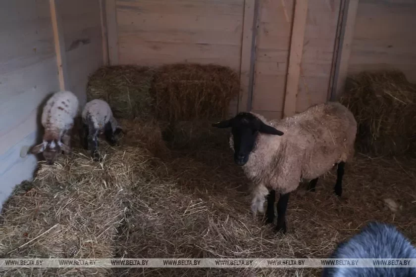 В Коложской церкви в Гродно снова устроили живой вертеп. Здесь поселились овечка, коза и двое ягнят.