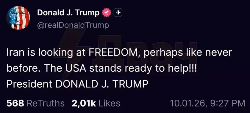 «Иран стремится к свободе, может быть как никогда раньше. США готовы помочь!!!» — говорится в посте.