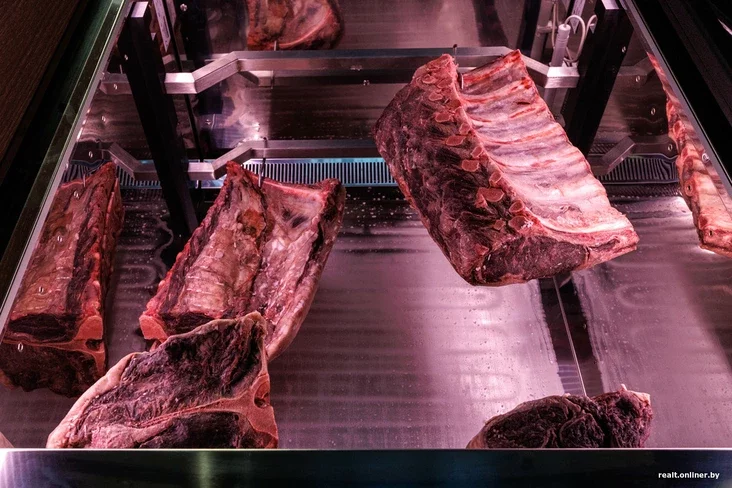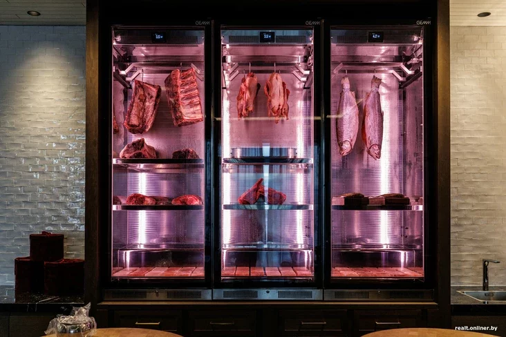 «Эти камеры позволяют мясу находиться в контролируемых условиях: вызревать, стареть, скажем так. Это придает ему определенные характеристики. То есть идет процесс окисления жиров, что улучшает аромат мяса. Он становится более насыщенным. В толще мяса начинают вырабатываться ферменты, делая его более мягким, нежным, но при этом плотным. Уходит лишняя влага, а вкусы сосредотачиваются внутри.