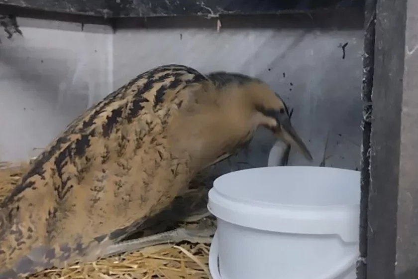 Осмотр ветеринара показал, что наиболее вероятной причиной падения стали сильное переохлаждение и истощение. Для спасения птице срочно были необходимы тепло, покой и специальное кормление. Специалисты связались с одним из природоохранных учреждений, которое согласилось принять выпь.