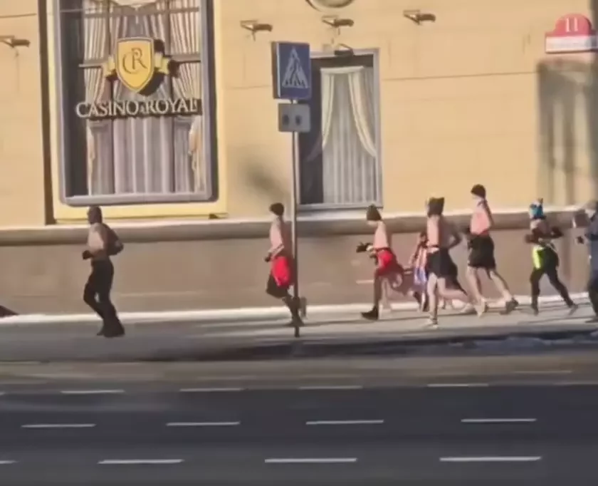 В социальной сети Threads появились видео, на которых видно, как вдоль проспекта, сначала в районе парка Челюскинцев, а потом недалеко от площади Независимости в другом конце города, бежит группа мужчин. Из экипировки на них — преимущественно только шорты, шапки и перчатки, только некоторые утеплились легинсами. И это при том, что температура воздуха в столице опустилась до -17°C, а по ощущениям погода воспринимается как все -25°C.