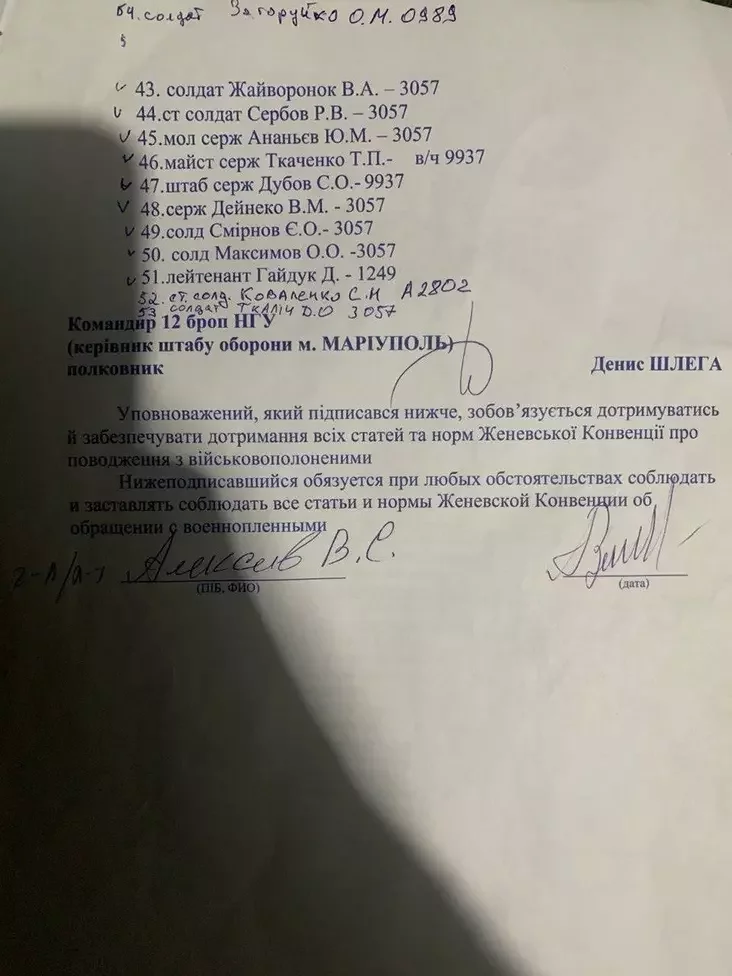 Генерал обещал азовцам выполнение россиянами Женевской конвенции об обращении с военнопленными и гарантировал нормальные условия содержания для украинских пленных. И именно его подпись стояла под соответствующим документом, подписанным тогда в Мариуполе.