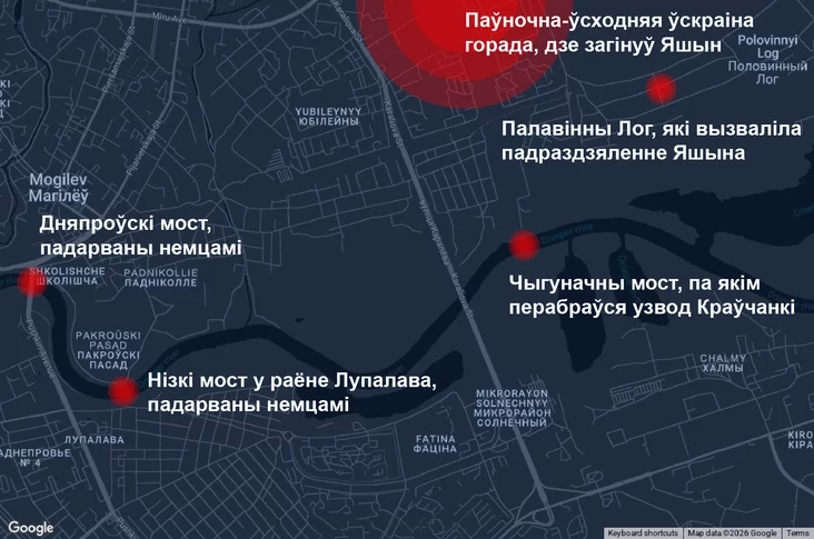 Согласно донесению о безвозвратных потерях от 28 июня 1944 года, Яшин погиб на северо-восточной окраине Могилёва, что мало соотносится с центральным расположением моста.