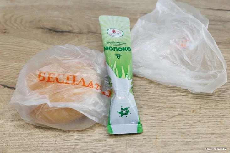 Во-вторых, есть еще одна булочку весом 50 граммов за 45 копеек. Пару ей составит пакетик сухого молока за 46 копеек. Его упаковка похожа на растворимый кофе, в ней 25 граммов продукта. Конкретно этот сделан в Рогачеве. А вот любые варианты обычного молока уже получаются мимо заданного бюджета, даже детское.