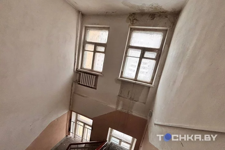 Старинный дом в самом центре Минска напротив Большого театра. Здесь свое «Лебединое озеро». Водопады льются с крыши. Некоторые жильцы спят с тазиками, а кто-то и вовсе переехал — в сырости невозможно находиться, пишет «Точка».