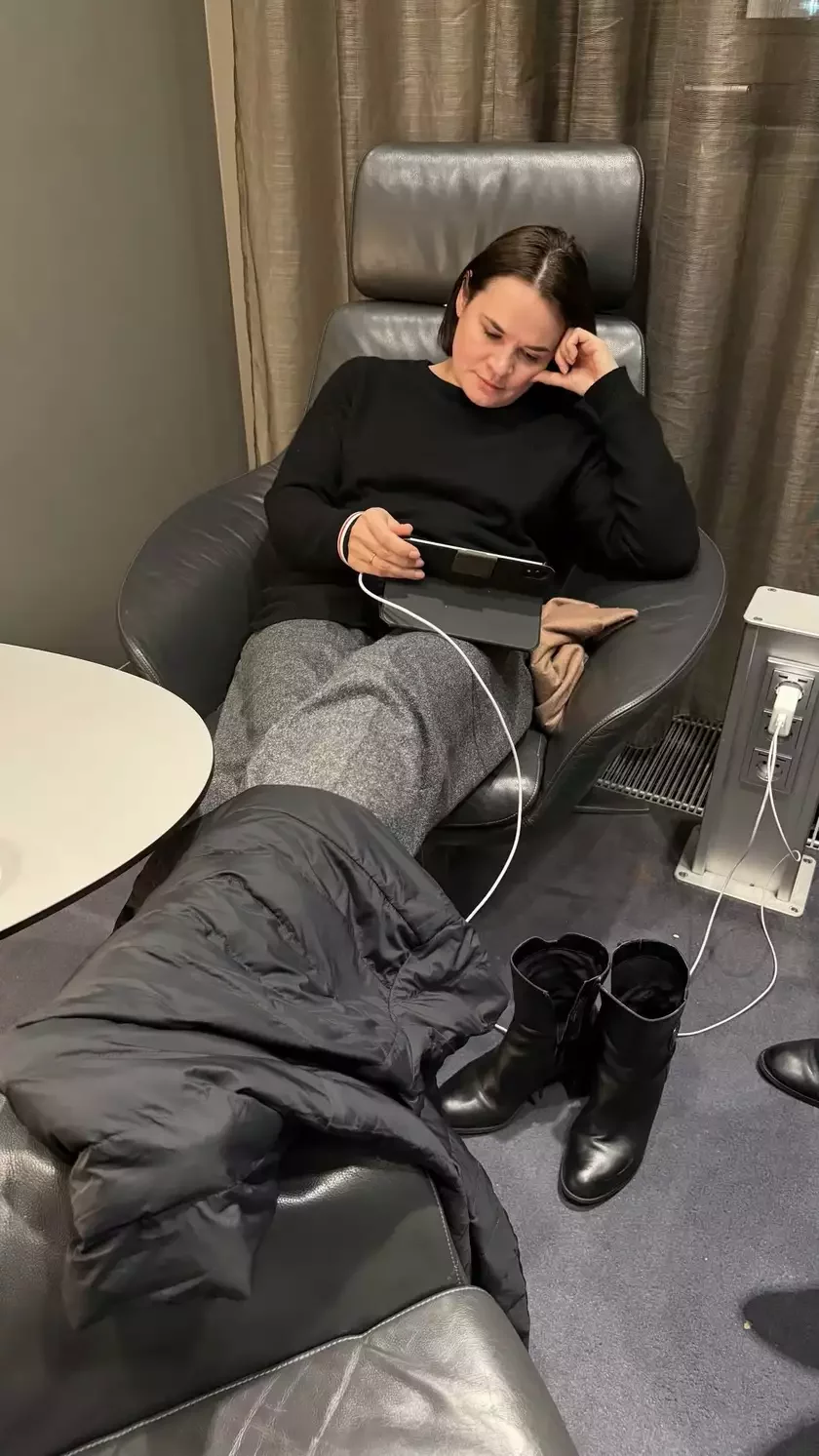 «Рейсы из Вены отменили. Из-за снега! Сижу восьмой час в аэропорту. А как вы проводите вечер пятницы?», — написала Светлана Тихановская в Threads.