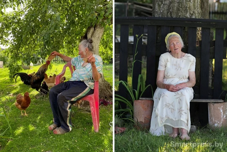 «Это все про меня? — смущается женщина. — Прыемна. Это [внучка] Дашка закинула в интернет мои фотокарточки, а людям спадабалася. Однажды пыталась на голову у стены встать. Все изучила, чтобы безопасно было. Но сын не позволил (смеется)».