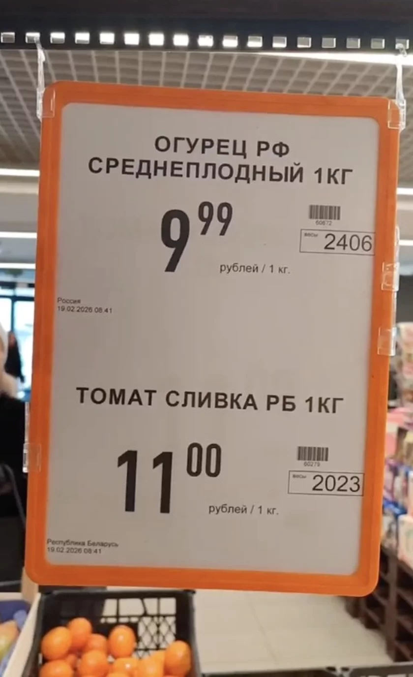В Минске профсоюзы провели проверку магазинов и обратили внимание на стоимость огурцов, которые продавались по 9,99 рубля. Во время рейда выяснилось, что в одной из торговых точек огурцы обозначались как российские, что позволило устанавливать для них более высокую цену. Однако на упаковке было указано, что производитель — белорусское предприятие из Витебской области.