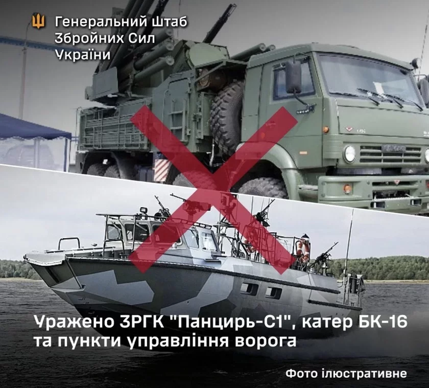 По данным Генштаба, там же атакован десантный катер БК-16. Масштабы ущерба уточняются.