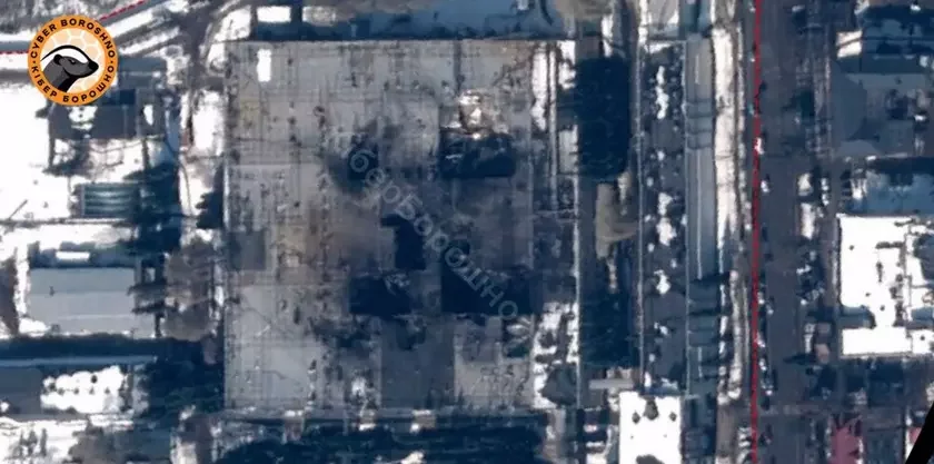 На спутниковых снимках, опубликованных CyberBoroshno, видны последствия пяти попаданий по главному производственному цеху, нанесенных крылатыми ракетами Storm Shadow.