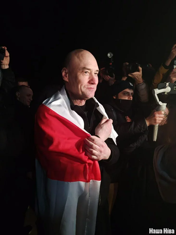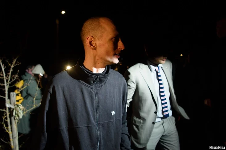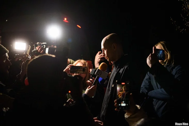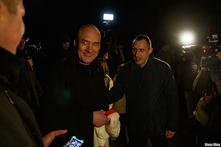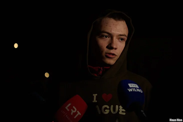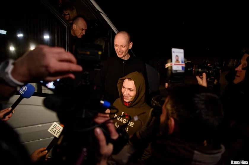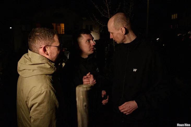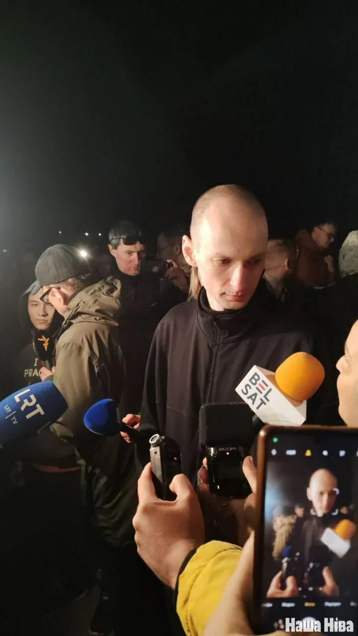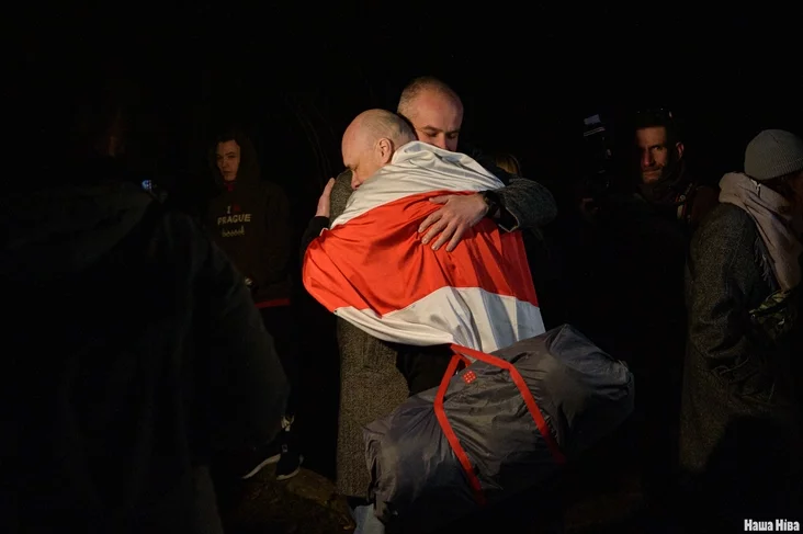 К журналистам вышли Валентин Стефанович, Эдуард Пальчис, Катерина Андреева, Никита Золотарев — они среди партии, которую освободили и депортировали в Литву. Встречали их и бывшие политзаключенные — например, Игорь Лосик и Павел Северинец.