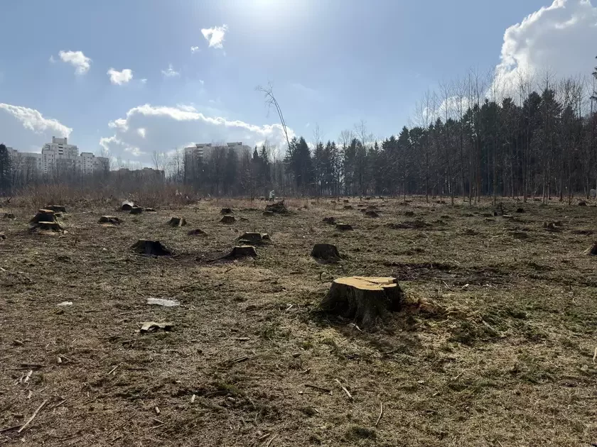 Печальные фотографии пеньков там, где еще недавно был густой лес, появились в соцсетях. Вырубка является продолжением вырубок, которые велись в предыдущие годы, продолжая и без того большой пробел в сторону застройки со стороны четной стороны улицы Максима Горецкого.