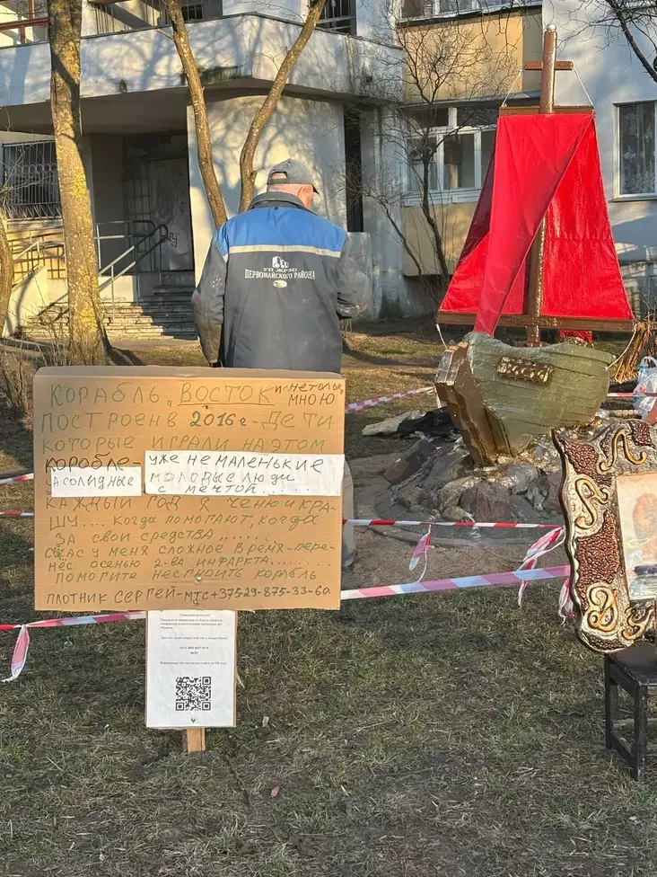 «Корабль «Восток» построен в 2016 году. Дети, которые играли на этом корабле, уже не маленькие, а солидные молодые люди с мечтой… Каждый год я ремонтирую, крашу… Когда помогают, когда за собственные средства… Сейчас у меня сложное время — перенес осенью два инфаркта… Помогите не сгноить корабль».