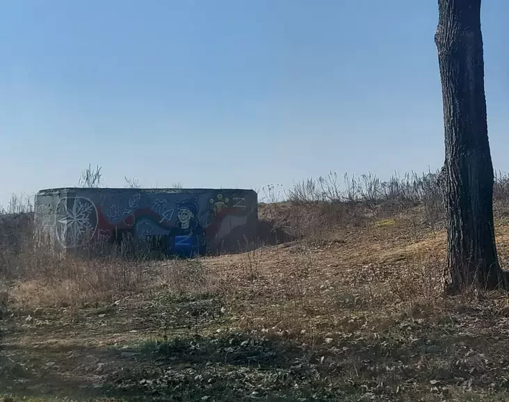 На стенах дота неизвестные художники нанесли патриотическое граффити с красно-зелёным государственным флагом и русскоязычной надписью «Молодость, юность, единство». Однако самой примечательной деталью стали несколько Z-символов, которые прочно ассоциируются с российским вторжением в Украину.