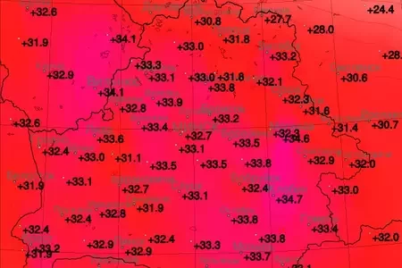 В Минске вчера было +32,7, под Минском — +33,5. До абсолютного рекорда — три градуса2